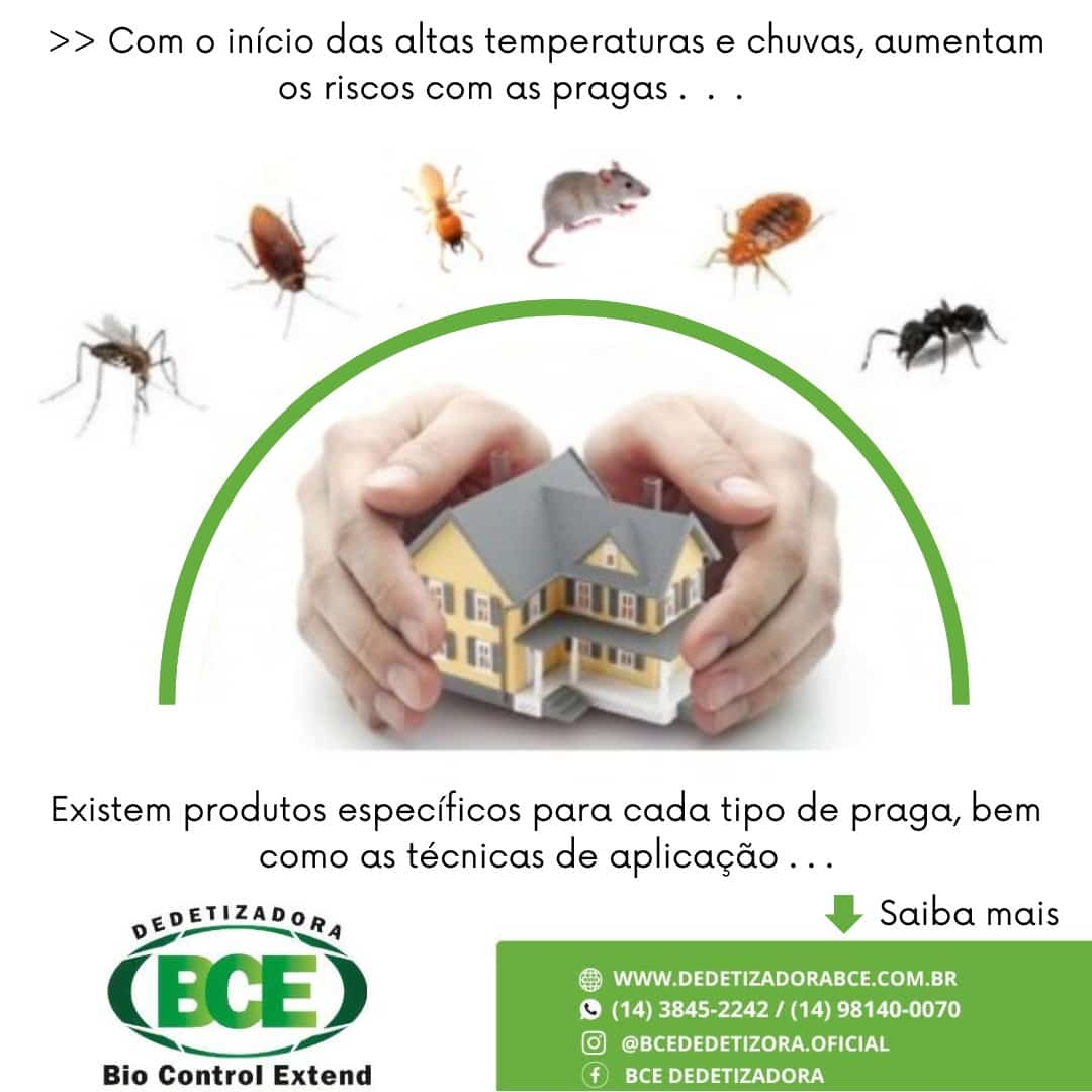 A BCE dispõe de uma equipe de colaboradores especializados e treinados em resolver problemas de infestação de insetos, roedores e demais pragas urbanas. Com o objetivo de atender as expectativas de nossos clientes, procuramos minimizar o uso de produtos químicos e seus impactos ambientais, sempre visando os devidos cuidados com a saúde pública, alimentação e o meio ambiente.